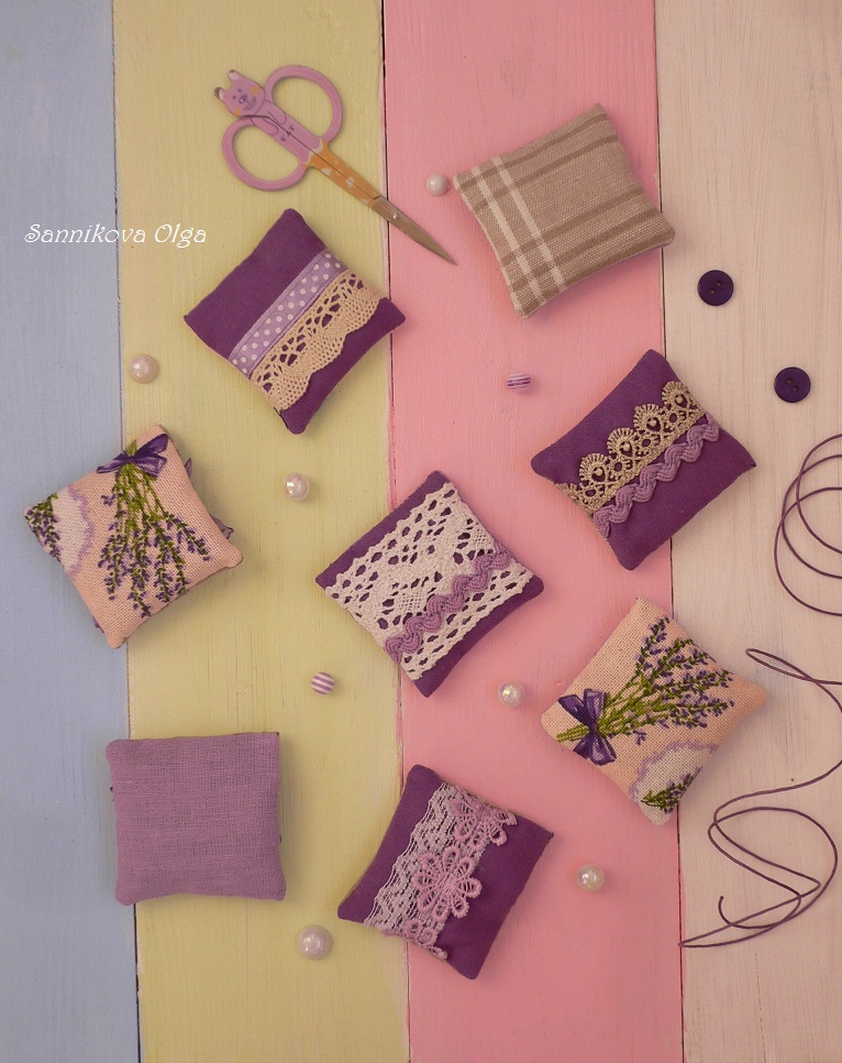 Еще в августе меня попросили сделать лавандовые саше в виде подушечек, но в силу личных обстоятельств (и состояния здоровья в том числе), только ближе к концу сентября мне удалось сесть за эту ароматную работу.